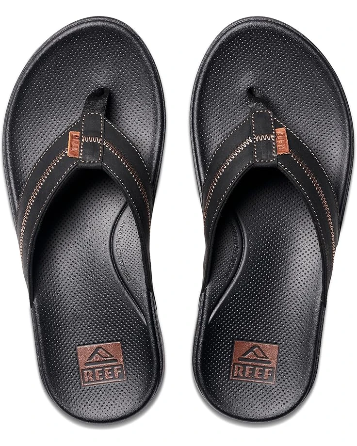 - Unwind and chill out in style wearing the Reef® Cushion Phantom 2.0 Le. Crafted from leather upper with rich, and full grain strap, this pair of classic silhouette slippers features round toe design, cushioned and rebounding support footbed, polyester lining, and brand detailing on the footbed.