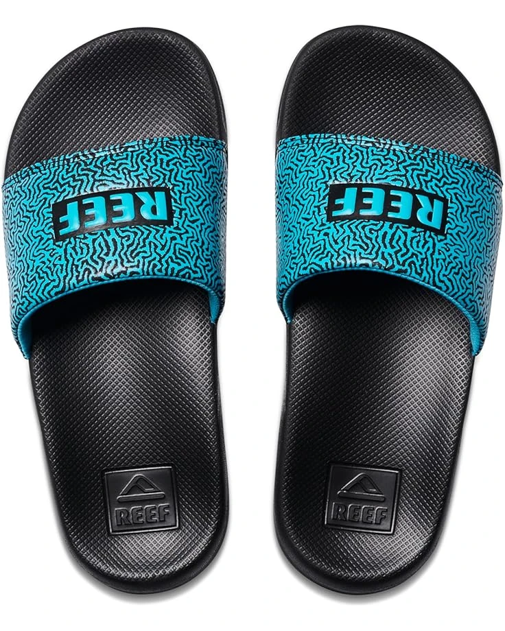 - Give your kiddo’s style tempo a ravishing update by opting for the Reef® Kids Kids One Slide Flip Flops. The slip-on footwear features water-friendly synthetic strap with super soft padded jersey lining and injection molded waterproof EVA footbed.